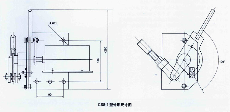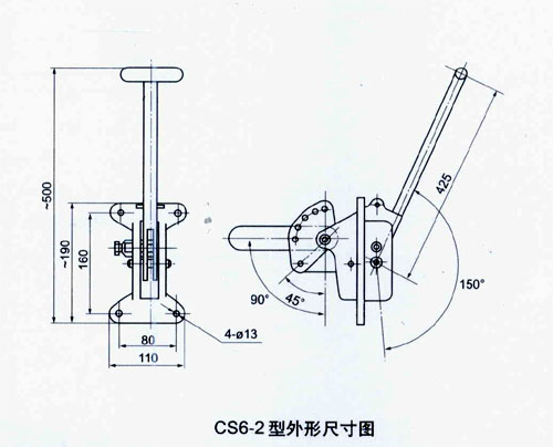 CS型手動(dòng)機(jī)構(gòu)由底座、操作手柄及邊板等組成。