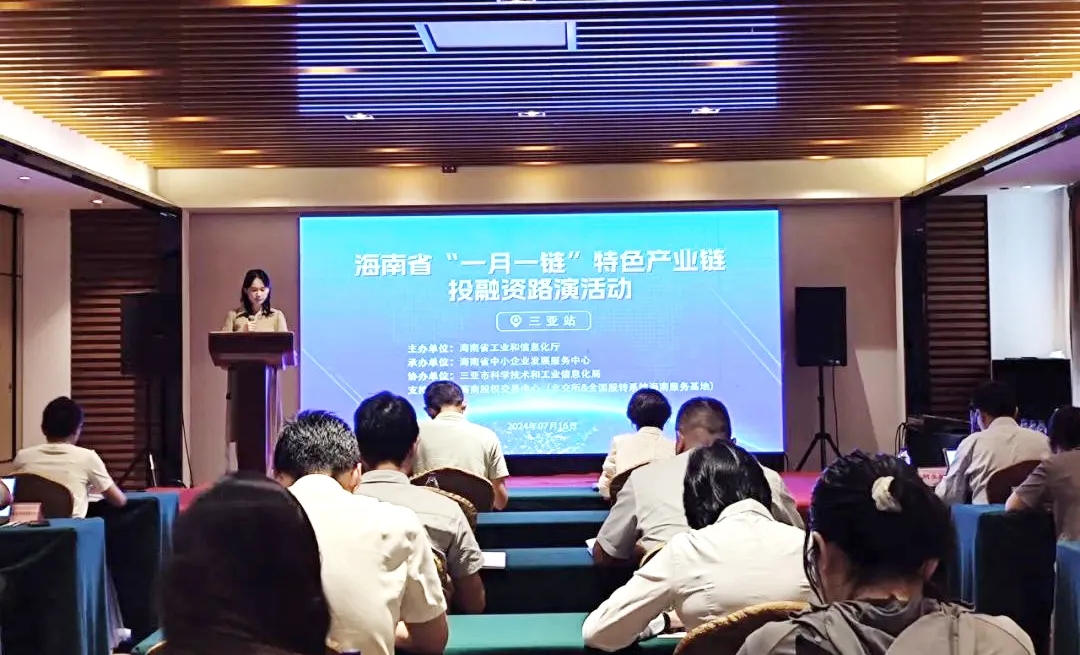 7月16日上午,由海南省工業(yè)和信息化廳主辦,海南省中小企業(yè)發(fā)展服務中心承辦,三亞市科學技術和工業(yè)信息化局協(xié)辦、海南股權交易中心提供支持的海南省“一月一鏈”投融資路演活動在三亞順利開展。活動旨在為構建我省...