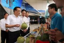 3月22日下午,李克強在三亞市民游客中心與海南的大學(xué)生創(chuàng)業(yè)團隊進行面對面交流,鼓勵大學(xué)生們要勇于創(chuàng)新和創(chuàng)業(yè),其中就有海南股權(quán)交易中心掛牌企業(yè)—??谪磙r(nóng)果業(yè)有限公司,李克強現(xiàn)場使用仨農(nóng)果業(yè)研發(fā)的“開椰神器...