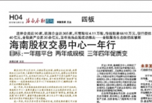 一年前,位于澄邁老城開發(fā)區(qū)的海南股權(quán)交易中心(下稱海南股交中心)第一次響起了敲鑼聲。當(dāng)天,首批49家海南企業(yè)通過海南股交中心踏入資本市場(chǎng)。而至今,已有365家企業(yè)掛牌海南股交中心。去年12月28日,海南股...