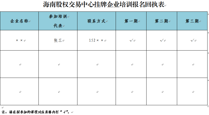 請有意向參加培訓的掛牌企業(yè)于2015年7月27日前將報名回執(zhí)表發(fā)送至郵箱:yangyanghua@hnexchange.com。