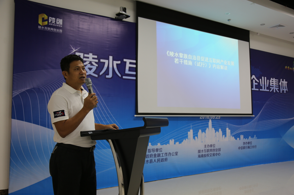 緊接著,陵水縣工信局局長鄭祥江解讀了陵水縣促進(jìn)互聯(lián)網(wǎng)產(chǎn)業(yè)發(fā)展有關(guān)政策,對企業(yè)關(guān)心的企業(yè)培育、人才引進(jìn)、項(xiàng)目補(bǔ)貼、金融和創(chuàng)業(yè)扶持等方面做了深入的宣傳。