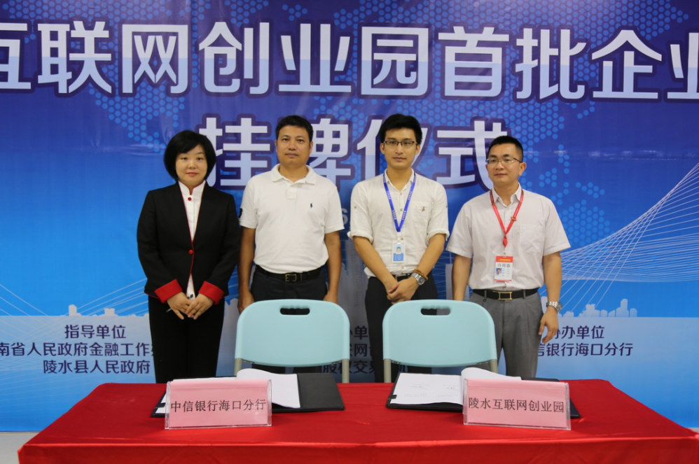 活動(dòng)上,中信銀行??诜中信c陵水互聯(lián)網(wǎng)創(chuàng)業(yè)園簽訂了協(xié)議書,就加強(qiáng)雙方合作達(dá)成了意向。