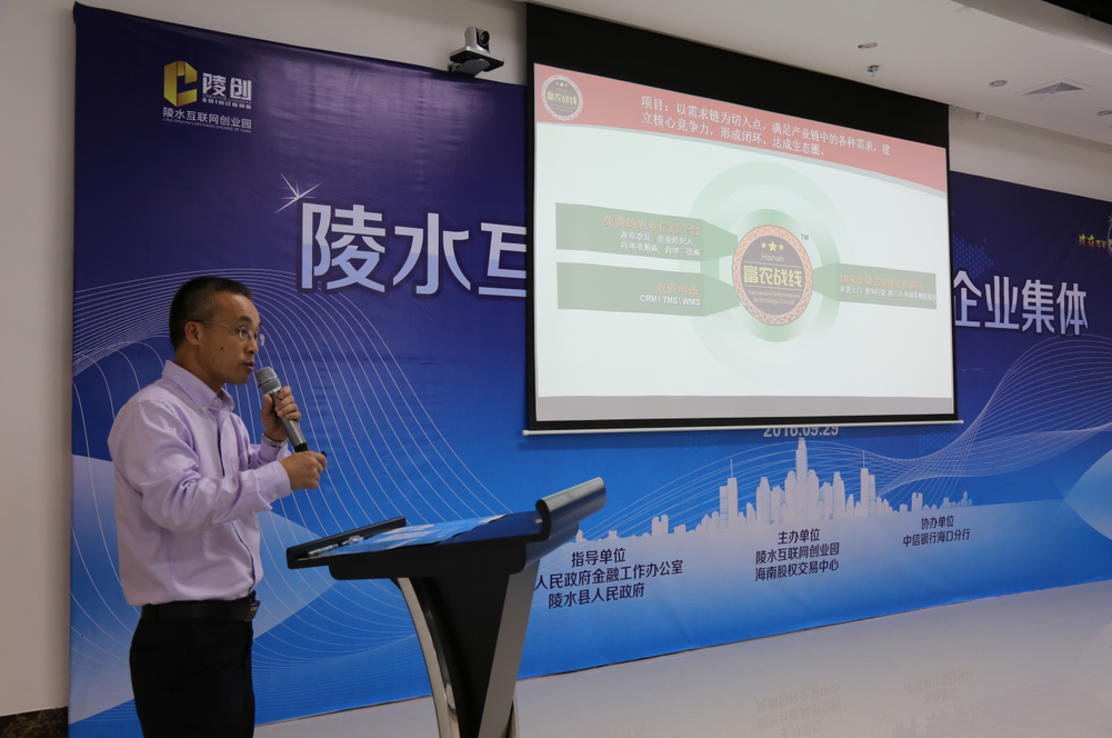 陵水縣政府副縣長許輝春、工信局局長鄭祥江,海南股權(quán)交易中心副總裁程棟才、副總裁許博,陵水縣政府金融辦、工商局、教科局、商務(wù)局,中信銀行??诜中?、??刭Y本、大唐發(fā)控、中匯創(chuàng)投等機(jī)構(gòu),以及31家掛牌企業(yè)的代表共同出席了本次活動(dòng)。