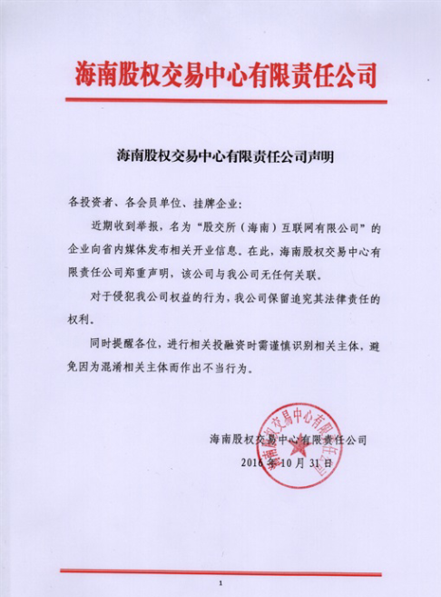 海南股權(quán)交易中心有限責(zé)任公司聲明