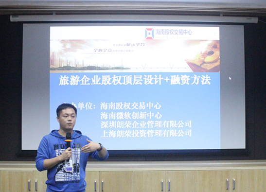 11月9日,海南股權(quán)交易中心聯(lián)合深圳朗榮企業(yè)管理有限公司、上海朗榮投資管理有限公司、海南微軟創(chuàng)新中心有限公司為海南旅游企業(yè)帶來創(chuàng)業(yè)力課程——旅游企業(yè)股權(quán)頂層設(shè)計+融資方法培訓(xùn)。