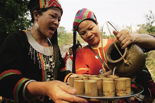 在漢族的傳統(tǒng)節(jié)日和風(fēng)俗習(xí)慣中,喜慶和重要的日子都離不開酒,黎家人也是如此。每當(dāng)盛大節(jié)日到來(lái),黎家人總會(huì)拿出釀好的山蘭美酒,與親朋好友一起飲個(gè)痛快?!昂榷嚯y醉,醉了難醒,醒了難忘”,喝過(guò)的人都對(duì)山蘭酒贊不絕口。