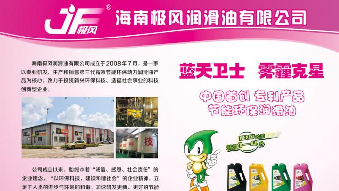 | 企業(yè)說明: | 海南極風(fēng)高科技股份有限公司是以專業(yè)研發(fā)、生產(chǎn)和銷售節(jié)能環(huán)保潤滑油產(chǎn)品為核心,致力于投資新興環(huán)??萍?、造福社會事業(yè)的高新技術(shù)企業(yè)。 自主研發(fā)生產(chǎn)的 “極風(fēng)牌”節(jié)能環(huán)保汽車發(fā)動機(jī)潤滑油,以其有效降低汽車尾氣碳?xì)浠衔铮℉C)和一氧化碳(CO)排放量的環(huán)保功能,平均節(jié)油率17.47%(百公里節(jié)省燃油1-4升),有效降低汽車尾氣PM2.5顆粒物排放達(dá)36.4%,HC、CO、NOX等有毒有害氣體排放數(shù)據(jù)均優(yōu)于歐Ⅴ標(biāo)準(zhǔn),堪稱藍(lán)天衛(wèi)士、霧霾克星。因此,深受廣大用戶的認(rèn)可和好評,迅速成為汽車(船)發(fā)動機(jī)潤滑油換代升級首選的領(lǐng)先產(chǎn)品。 回顧海南極風(fēng)高科技股份有限公司的創(chuàng)業(yè)歷程,就是堅(jiān)持理想創(chuàng)新發(fā)展的實(shí)踐歷程。2011年8月在中國(三亞)國際熱帶雨林汽車越野挑戰(zhàn)賽上,“極風(fēng)”成為自由島參賽車隊(duì)專用潤滑油,并助力該車隊(duì)奪得第三名,實(shí)現(xiàn)了歷史性的突破。 2011年11月獲得海南省高新技術(shù)項(xiàng)目認(rèn)定。 2013年2月獲得國內(nèi)同行業(yè)唯一的國家發(fā)明專利授權(quán),發(fā)明專利名稱:節(jié)能環(huán)保汽車發(fā)動機(jī)潤滑油,專利號:ZL 201110095592.6。 2013年8月順利通過ISO9001質(zhì)量管理體系認(rèn)證。 2013年5月獲得全國交通運(yùn)輸節(jié)能減排推薦產(chǎn)品(技術(shù))榮譽(yù)。 2015年10月被評為高新技術(shù)企業(yè)。 公司為邁向資本市場做好準(zhǔn)備,于2015年進(jìn)行了股份制改制。 今天,“極風(fēng)”正以中華傳統(tǒng)文化“太極”之“極”、漢唐精神“大風(fēng)歌”之“風(fēng)”植根市場,深入人心。