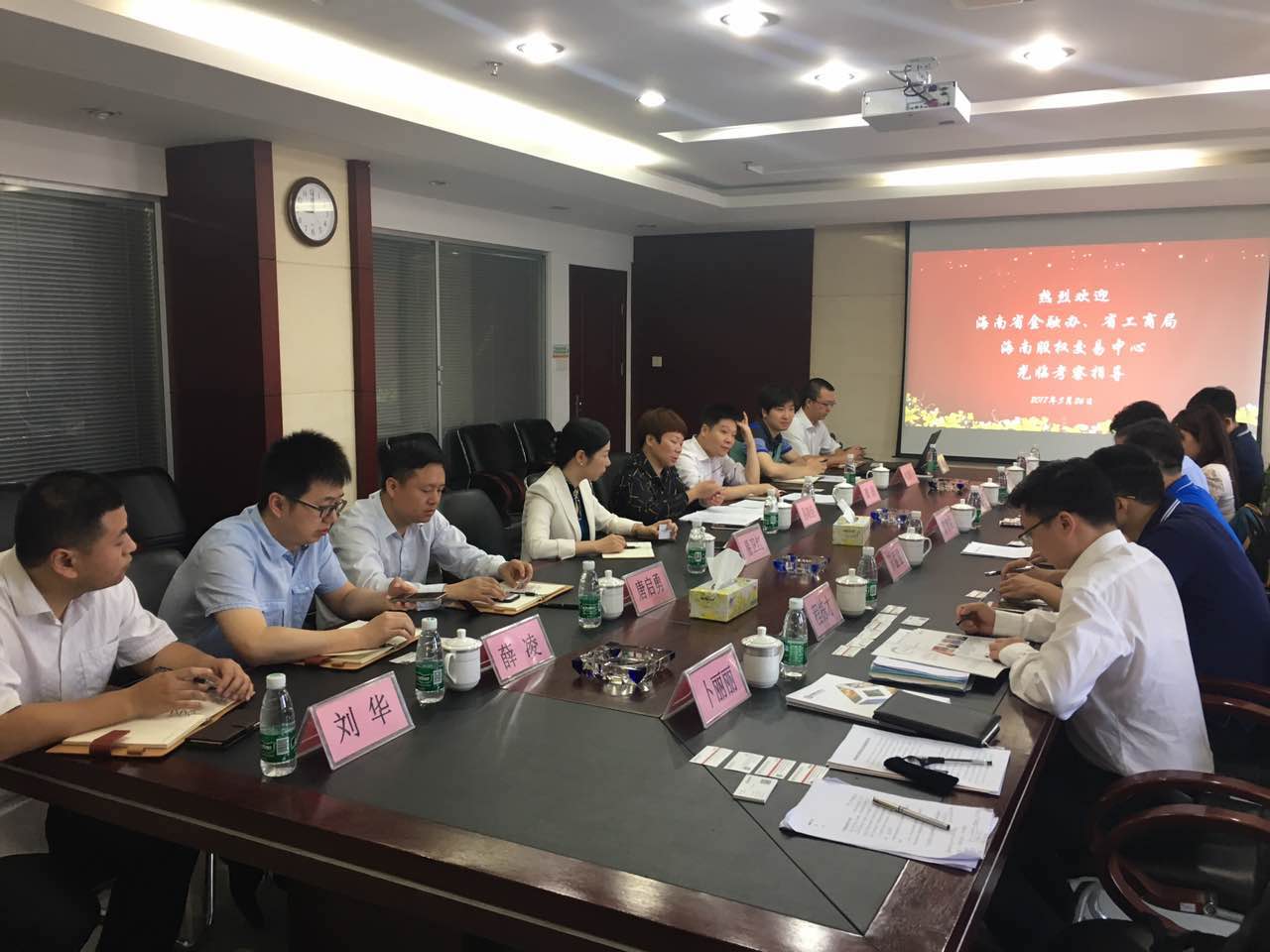 5月25日-26日,海南股權(quán)交易中心在省政府金融辦資本信用處處長廖增梁的帶領(lǐng)下,前往廣州股權(quán)交易中心、湖南股權(quán)交易所進(jìn)行調(diào)研學(xué)習(xí)。海南省工商局、澄邁縣政府、澄邁老城開發(fā)區(qū)相關(guān)工作人員,以及海南股交中心副總經(jīng)理程棟才、運營管理部負(fù)責(zé)人一同參與調(diào)研。
