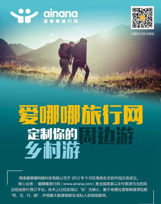 的鄉(xiāng)村游目的地是旅游突破現(xiàn)狀的一種探索。愛哪哪有信心成為海南本土孕育出的一個優(yōu)秀的互聯(lián)網(wǎng)公司,這是愛哪哪