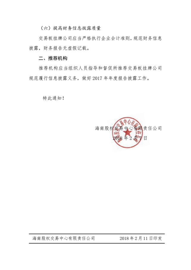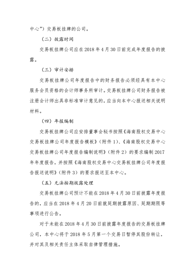 關(guān)于做好交易板掛牌公司2017年年度報告披露相關(guān)工作的通知