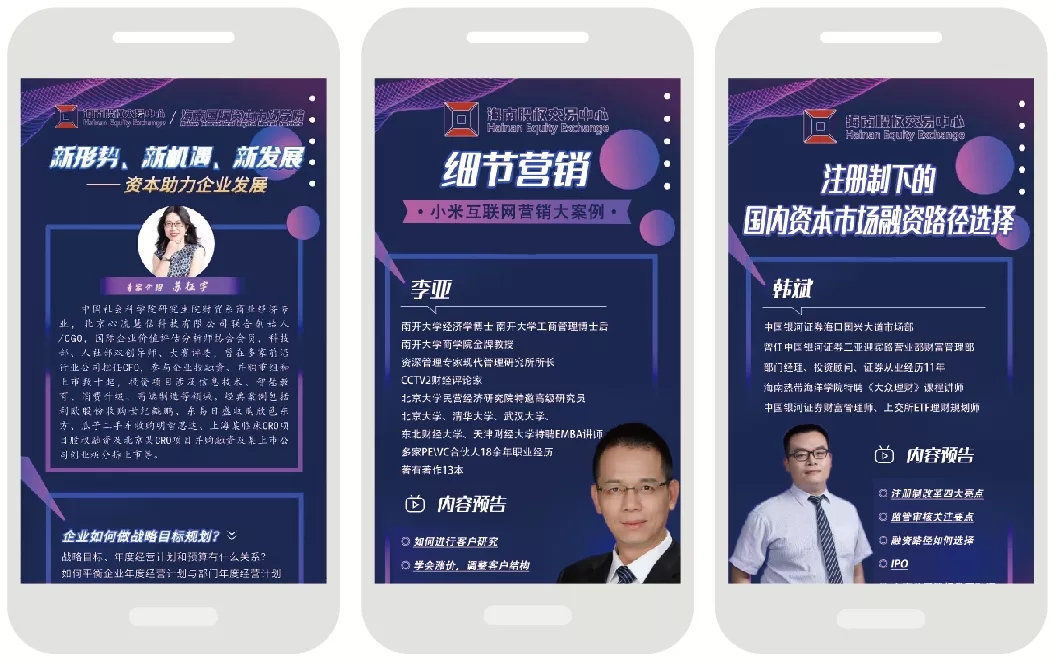 海南股交國際資本市場學院重磅推出線上課程,上線直通海股交、自貿(mào)港新觀察、創(chuàng)業(yè)與投融資三大專題課程,特邀國內(nèi)行業(yè)知名專家及企業(yè)創(chuàng)始人,與企業(yè)家一起,聚勢融智,為企業(yè)成長賦能。