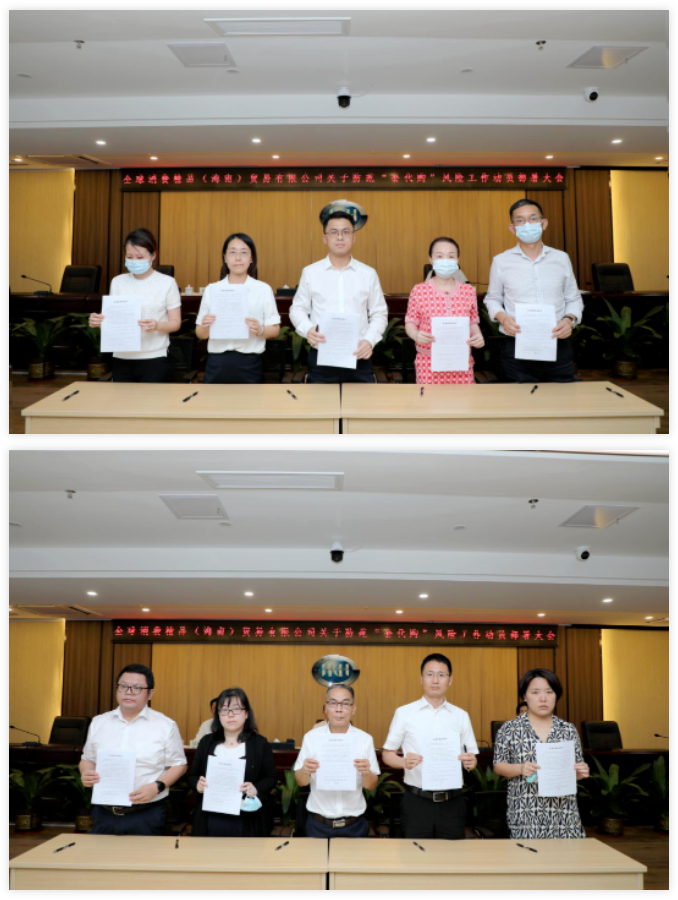 5月6日下午,在全省打擊走私工作會(huì)議結(jié)束后,??厝蚓费杆俳M織召開(kāi)防范“套代購(gòu)”風(fēng)險(xiǎn)工作動(dòng)員部署會(huì),學(xué)習(xí)貫徹習(xí)近平總書(shū)記關(guān)于防控“套代購(gòu)”走私重要指示批示精神和省委書(shū)記馮飛、省政府代省長(zhǎng)劉小明重要講話精神以及陳懷宇副省長(zhǎng)專題會(huì)議精神,對(duì)全球精品防范“套代購(gòu)”風(fēng)險(xiǎn)作出安排部署。海南控股黨委書(shū)記、董事長(zhǎng)周軍平出席會(huì)議并提出工作要求。
