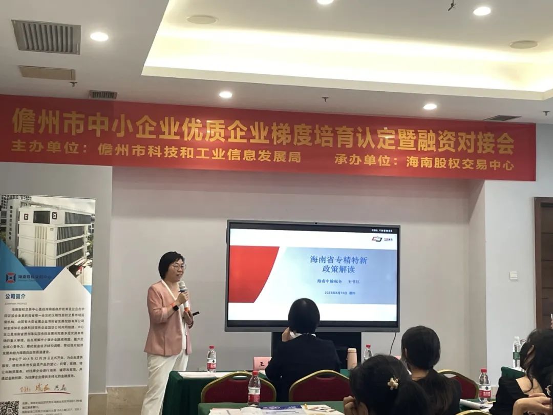 下午的專題培訓(xùn)活動(dòng)在儋州市永嘉大酒店舉行,培訓(xùn)會(huì)上,海南股交工作人員圍繞“我國多層次資本市場體系”“融資渠道分析”“掛牌支持政策”等方面,為企業(yè)講解如何通過多層次資本市場謀求新發(fā)展。通過不同資本路徑對企業(yè)發(fā)展影響的詳細(xì)講解,幫助企業(yè)理清未來發(fā)展方向,提前做好資本路徑規(guī)劃,借道多層次資本市場實(shí)現(xiàn)企業(yè)高質(zhì)量發(fā)展。