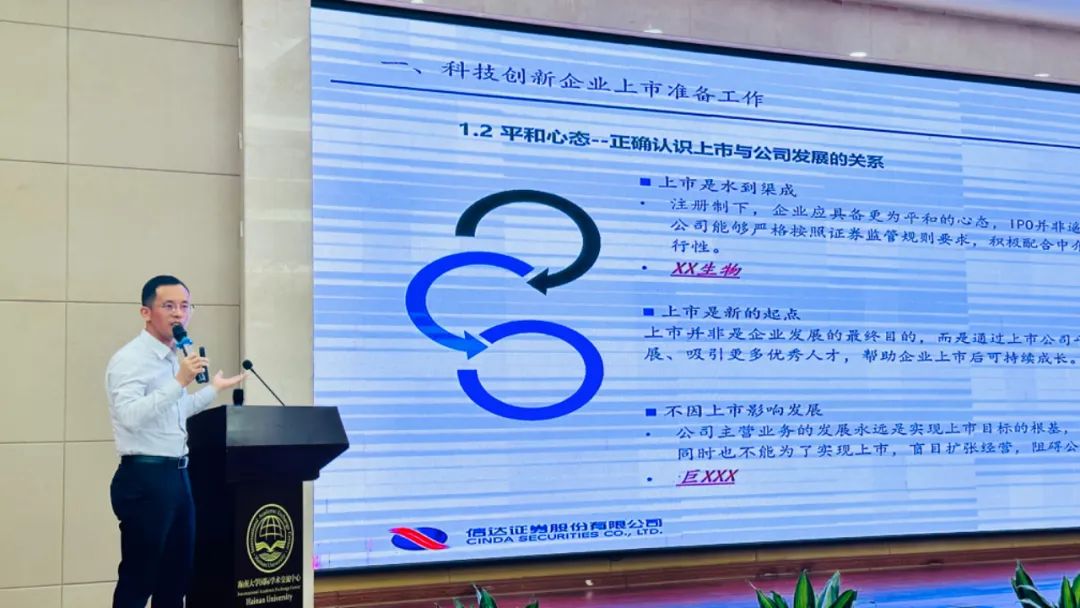 近年來,??谑猩钊胴瀼芈鋵崌液褪∥?、省政府的指示精神,高度重視培育和服務(wù)上市后備企業(yè)工作,采取有力措施,發(fā)動服務(wù)資源,引導(dǎo)企業(yè)走高質(zhì)量發(fā)展之路。會上,海口市科工信局四級調(diào)研員熊華榮表示,將進(jìn)一步聚集企業(yè)培育資源要素,健全海口企業(yè)梯度培育體系,通過專題培訓(xùn)、調(diào)研走訪、參觀交流,打造海口中小企業(yè)培育特色服務(wù)模式,為企業(yè)發(fā)展開展具有針對性、實效性、創(chuàng)新性的專題培育活動。同時,他也希望參會企業(yè)能通過今天的培訓(xùn),全面的了解注冊制、熟悉資本市場規(guī)則,并能夠根據(jù)企業(yè)的實際情況,提前做好上市路徑規(guī)劃,借助多層次資本市場實現(xiàn)企業(yè)高質(zhì)量發(fā)展。