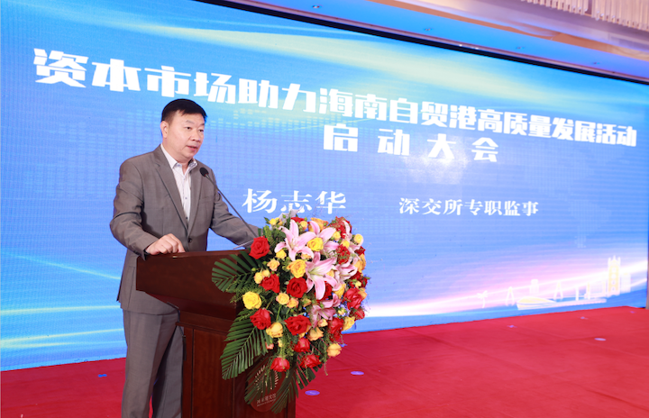 之后,深圳證券交易所專職監(jiān)事楊志華向大會(huì)致辭?!吧罱凰c海南地理相近、聯(lián)系緊密,雙方不斷深化合作,結(jié)出豐碩果實(shí)?!彼f,深交所累計(jì)服務(wù)海南企業(yè)股票融資466.2億元、債券融資645.7億元,為海南經(jīng)濟(jì)社會(huì)發(fā)展注入強(qiáng)勁資本動(dòng)力,助力打造中國(guó)式現(xiàn)代化的海南樣板。楊志華強(qiáng)調(diào),深交所將全力支持海南自貿(mào)港高質(zhì)量發(fā)展,未來將大力推動(dòng)優(yōu)質(zhì)企業(yè)上市;積極