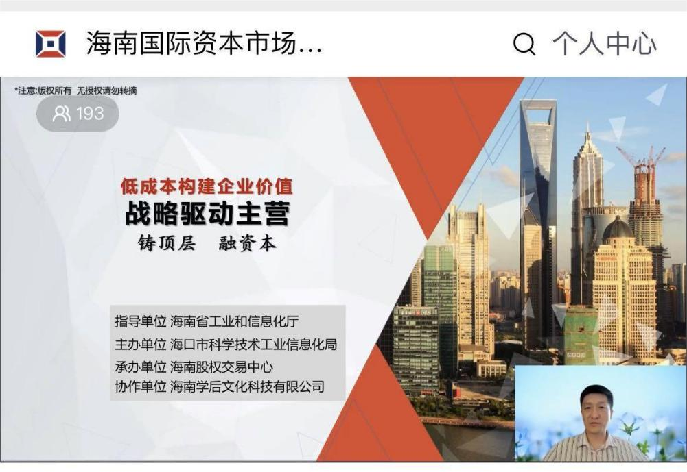 中小企業(yè)是經(jīng)濟(jì)和社會發(fā)展的主力軍,在促進(jìn)增長、保障就業(yè)、活躍市場、改善民生等方面發(fā)揮著重要作用。近年來,海口市委市政府高度重視我市中小企業(yè)的發(fā)展。為營造我市中小企業(yè)發(fā)展良好環(huán)境,加快推動我市中小企業(yè)實現(xiàn)高質(zhì)量發(fā)展,海南股交緊密結(jié)合海口市科工信局工作部署,根據(jù)我市中小企業(yè)發(fā)展需求,從2022年12月起連續(xù)開展多場次的企業(yè)發(fā)展系列培訓(xùn)活動。