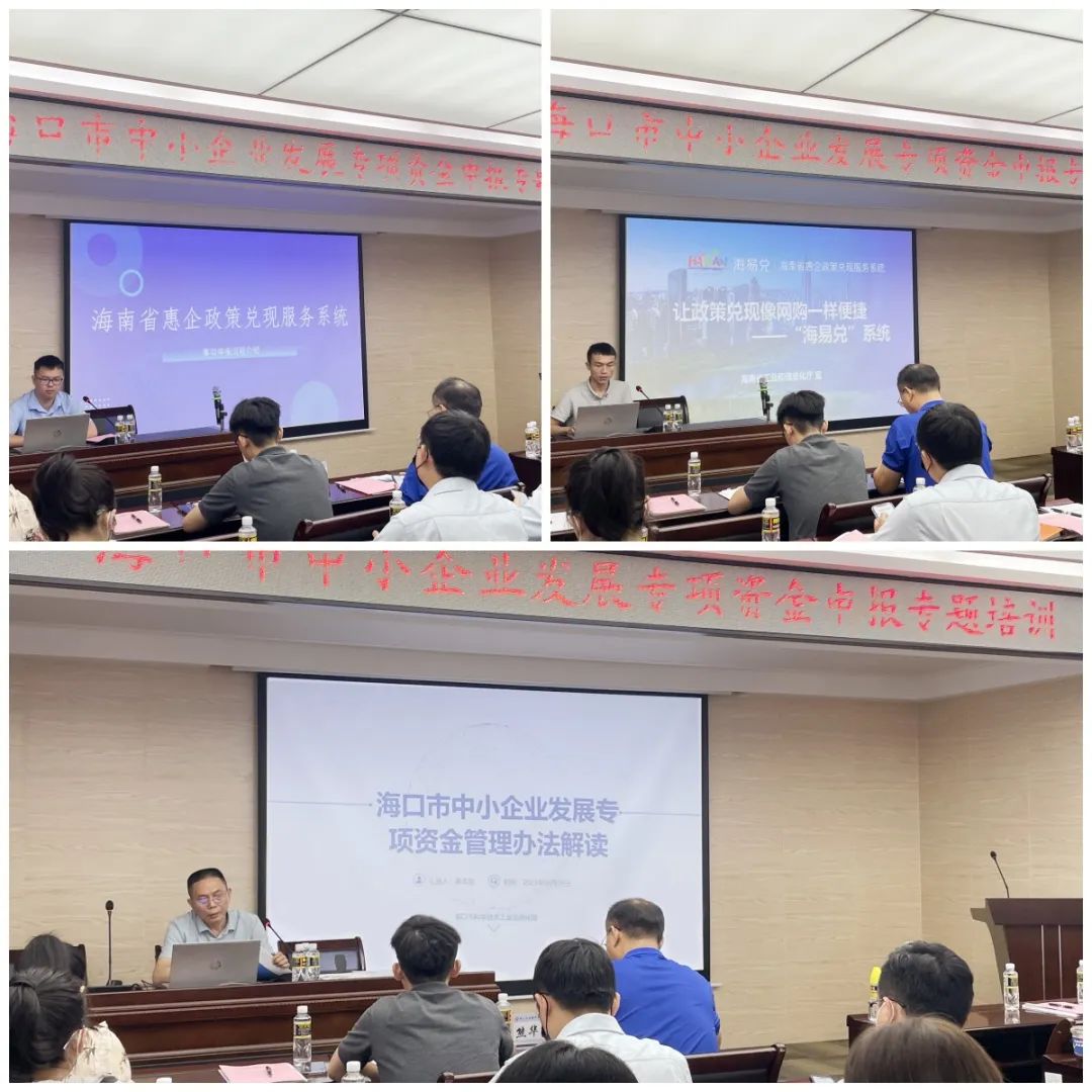 會上,??谑锌乒ば啪旨笆姓?wù)局政策梳理團隊分別解讀了《海口市中小企業(yè)發(fā)展專項資金管理辦法》《??谑兄行∑髽I(yè)發(fā)展專項資金線上申報操作手冊》,并由海南飛行者科技有限公司現(xiàn)場演示了線上申報2023年??谑兄行∑髽I(yè)發(fā)展專項資金“精特新中小企業(yè)獎勵”。隨后,數(shù)字海南有限公司向參會企業(yè)講解了“海易兌”平臺系統(tǒng)架構(gòu)、操作流程等方面內(nèi)容。