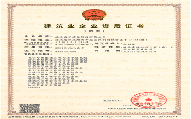 | 主營(yíng)業(yè)務(wù): | 消防工程配套設(shè)備的安裝、調(diào)試、設(shè)計(jì),消防設(shè)施維護(hù)保養(yǎng)檢測(cè),項(xiàng)目代建,建筑工程,土木工程,水利水電工程,河道疏浚,室內(nèi)外裝修裝飾工程設(shè)計(jì)施工,水電安裝工程,中央空調(diào)安裝工程,電子與智能化工程設(shè)計(jì)施工,機(jī)電設(shè)備安裝工程,環(huán)保工程,公路工程,市政公用工程,電力工程,防雷工程設(shè)計(jì)施工,防雷裝置的檢測(cè),園林綠化工程設(shè)計(jì)施工,通信工程,通信設(shè)備維修,鋼結(jié)構(gòu)工程,人防工程,古建筑工程,古建筑維修,建筑機(jī)械租賃及銷售,船舶設(shè)施制造、維修,消防器材批發(fā)、零售及維修。 |