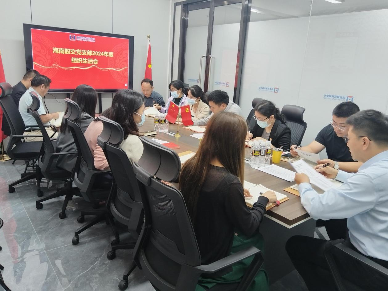 會(huì)前,海南股交黨支部組織黨員集中理論學(xué)習(xí),深刻領(lǐng)會(huì)黨中央精神,為會(huì)議的召開筑牢思想根基。同時(shí),廣泛開展談心談話,充分聽取各方意見建議,全面查擺問題,認(rèn)真撰寫對(duì)照檢查材料,為開好本次組織生活會(huì)做好充分準(zhǔn)備。會(huì)議通報(bào)了關(guān)于學(xué)習(xí)貫徹習(xí)近平新時(shí)代中國(guó)特色社會(huì)主義思想主題教育專題組織生活會(huì)整改措施落實(shí)情況和會(huì)前征求意見情況,朱磊代表支委班子作對(duì)照檢查,隨后,支委班子帶頭開展批評(píng)和自我批評(píng),支部黨員對(duì)照“四個(gè)帶頭”查擺問題,尋找差距,提出批評(píng)和意見。會(huì)議達(dá)到了統(tǒng)一思想、凝聚共識(shí)、增進(jìn)團(tuán)結(jié)的預(yù)期目標(biāo)。