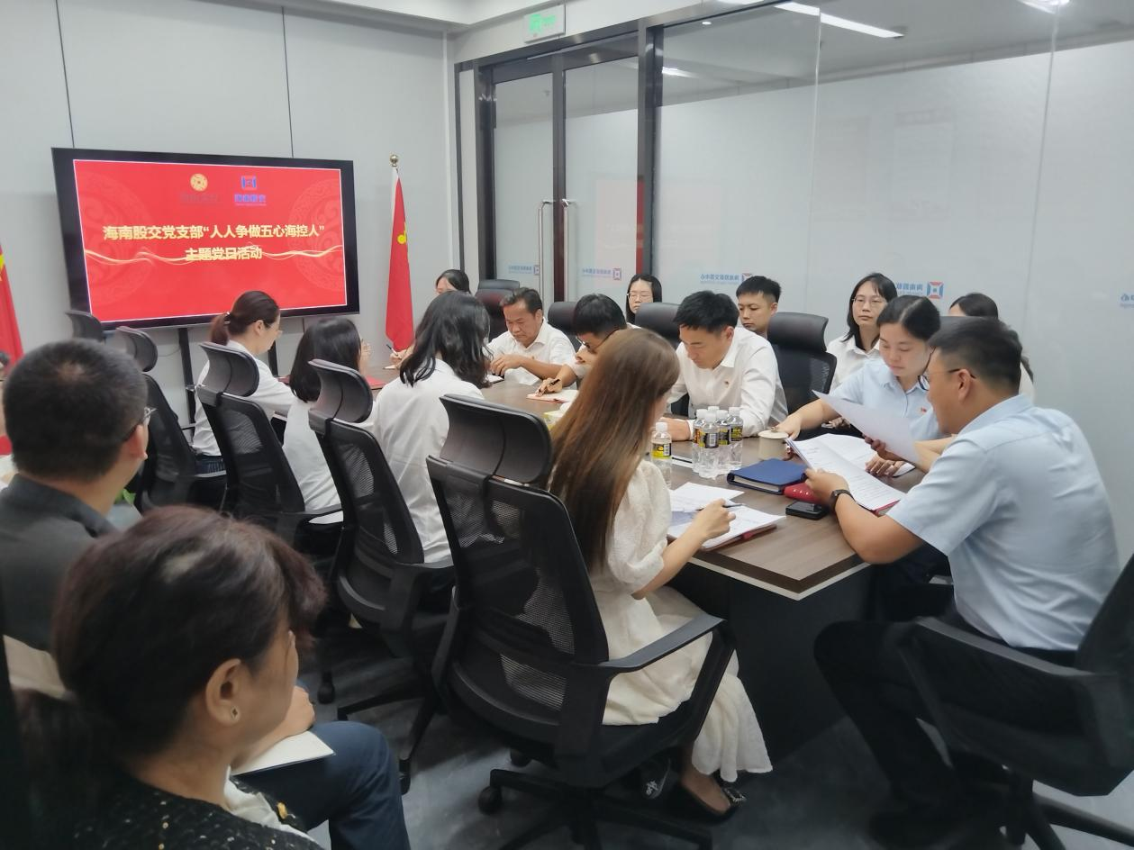 為深入貫徹落實(shí)海南控股“人人爭(zhēng)做五心??厝恕惫ぷ饕螅瑥?qiáng)化黨員干部責(zé)任擔(dān)當(dāng)意識(shí),提升團(tuán)隊(duì)凝聚力與戰(zhàn)斗力,近日,海南股交黨支部組織開(kāi)展“人人爭(zhēng)做五心海控人”主題黨日活動(dòng),海南股交黨支部書(shū)記、董事長(zhǎng)朱磊主持會(huì)議并作主題教育,全體員工參加會(huì)議。