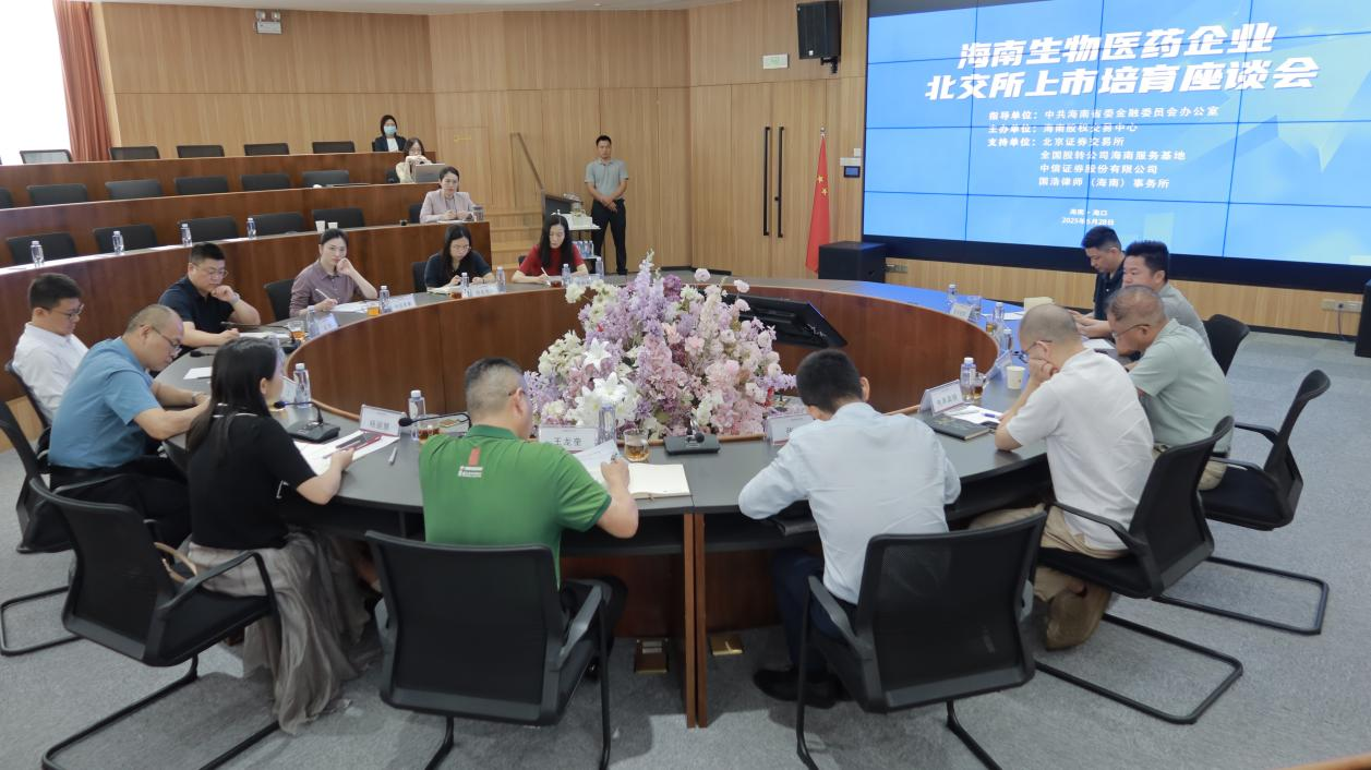 5月28日上午,由海南股權(quán)交易中心主辦、中共海南省委金融委員會辦公室指導的“海南生物醫(yī)藥企業(yè)北交所上市培育座談會”在??谑许樌匍_。北京證券交易所、全國股轉(zhuǎn)公司海南服務基地,中信證券股份有限公司及國浩律師(海南)事務所等單位共同支持本次活動。中共海南省委金融委員會辦公室、北京證券交易所、海南股權(quán)交易中心相關負責人及海南蘇生生物科技有限公司、上海延安醫(yī)藥洋浦股份有限公司、海南皇隆制藥股份有限公司等多家生物醫(yī)藥行業(yè)專精特新企業(yè)代表齊聚一堂,共探資本市場發(fā)展機遇。
