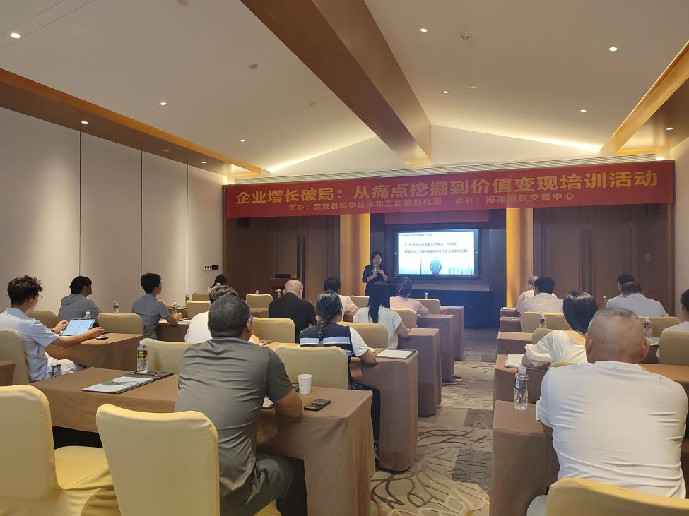 為助力本地中小企業(yè)應(yīng)對市場挑戰(zhàn),突破增長瓶頸,10月14日,由定安縣科學(xué)技術(shù)和工業(yè)信息化局主辦、海南股權(quán)交易中心承辦的“企業(yè)增長破局:從痛點(diǎn)挖掘到價(jià)值變現(xiàn)”專題培訓(xùn)活動,在定安成功舉辦。本次活動吸引了定安縣眾多中小企業(yè)負(fù)責(zé)人及管理者參與。