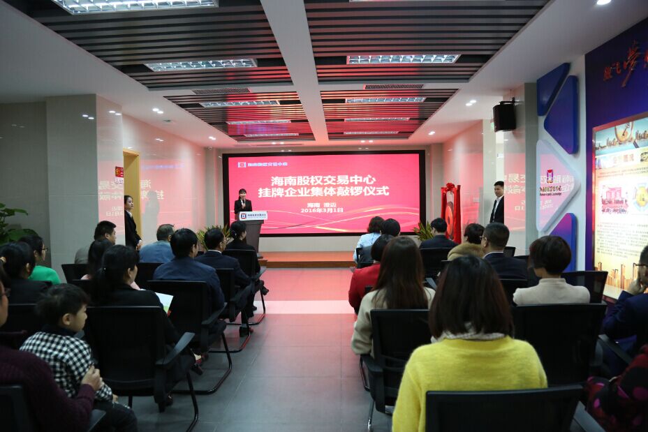 3月1日上午,海南股權(quán)交易中心企業(yè)集體掛牌儀式,在海南生態(tài)軟件園B13號(hào)一樓隆重舉行。5家企業(yè)現(xiàn)場(chǎng)集體掛牌,股交中心總裁班淼琦、副總裁吳惠玉和程棟才出席掛牌儀式。