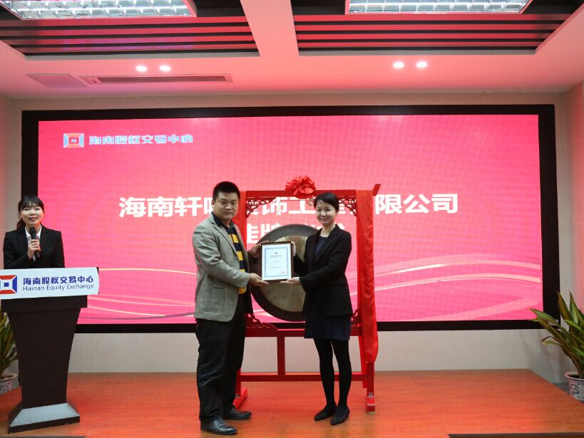 參與本次集體掛牌儀式的企業(yè)分別是:海南大信園林股份有限公司、海南高升醫(yī)藥科技開(kāi)發(fā)股份有限公司、海南釜王實(shí)業(yè)股份有限公司、海南軒鳴裝飾工程有限公司和海南家美樂(lè)家庭服務(wù)管理有限公司。